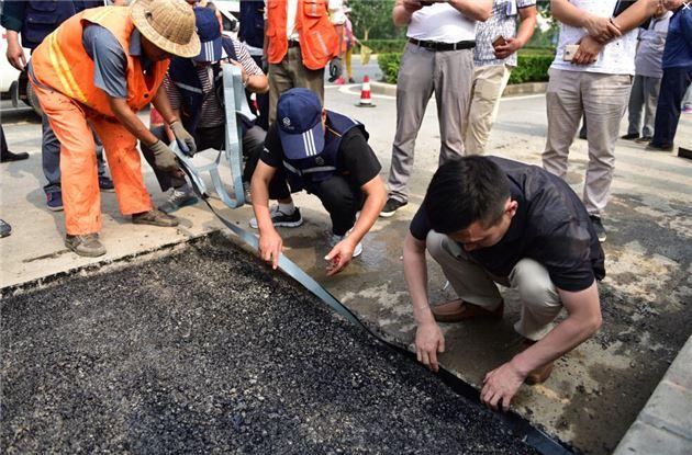 1、采用粘結(jié)力強的黏層油對地面處理,同時用抗裂貼對坑槽底部裂縫進行處理